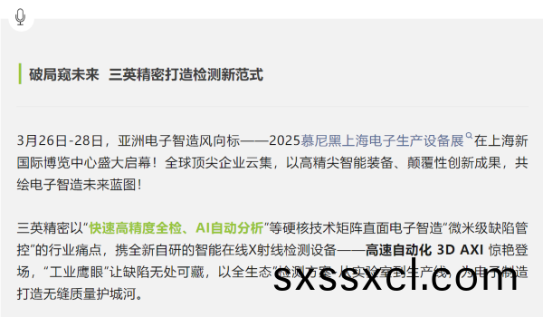 3D AXI引爆全場!勢(shi)領電子智造檢測(ce)新(xin)未來 | 三英精密2025慕(mu)尼黑上(shang)海電子展高燃(ran)收官!